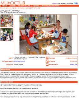 Описание: Събираме информация за Домове за деца лишени от родителска грижа, Домове за деца с увреждания и Домове за възрастни хора, която да използваме за създаването на лични интернет страници на всеки от тях (щракни тук за да видиш една от страниците, които сме създадали вече).